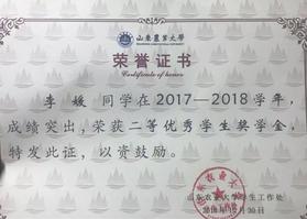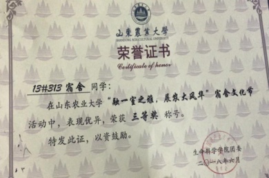 大一学年智育成绩班级第一,综合素质排名班级第一,荣获二等优秀学生奖学金、社会工作单项奖、优秀学生团干部荣誉称号。