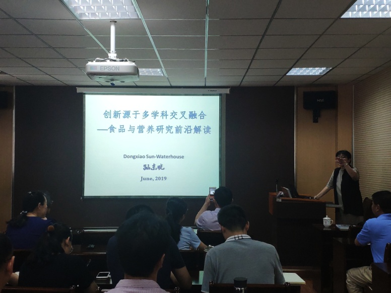 625日,新西兰食品科技院院士、伟徳1946讲座教授孙东晓博士应邀在我院5楼报告厅作了题为“创新源于多学科交叉融合-食品与营养研究前沿解读”的学术报告,我院全体教师和研究生参加了报告会。