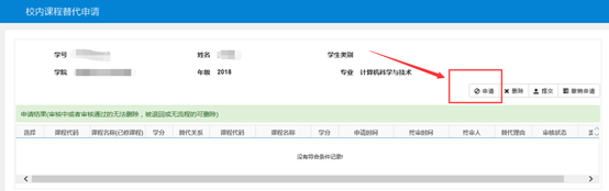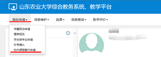 1、登录系统,点击报名申请,点击校内课程替代申请