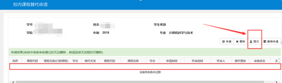 4、自动审核的系统自动审核通过,非自动审核需要选中该条申请,点击提交,等待学院、学校审核。