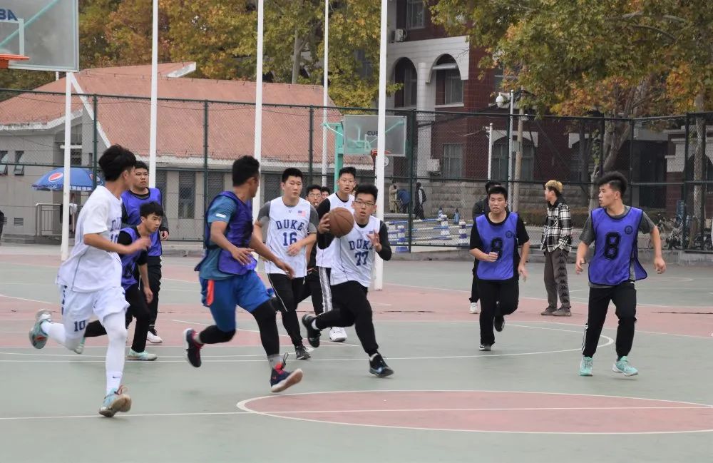 为了发扬同学们的团结协作精神,展示昂扬的斗志,培养人际交往能力。本着增进友谊、锻炼体魄、切磋球技的原则,116日中午,食科学院新生篮球赛于北校区西操场进行,由食科八班紫队与中英一班白队角逐冠亚军,食科二班蓝队与中英三班、四班黑队争夺季军。