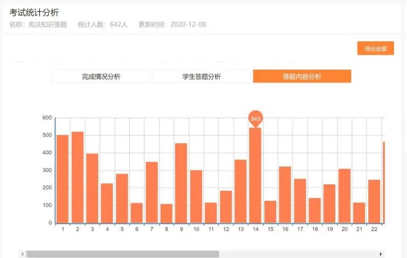 在活动中,学院团委积极组织开展易班线上普法答题活动,共642人参与考试,得分率较高。该线上竞答方式不仅调动了学生学习法治知识的积极性、主动性,同时也丰富了学生法治教育的内容与形式。