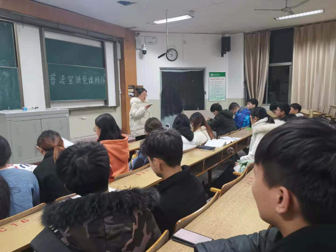 活动期间,学生预备党员积极切实开展宪法宣传教育工作,形成普法宣讲队,共有23名学生预备党员,走进全院51班级进行普法宣传,实现各年级班级全覆盖。从宪法文本入手,带领各班同学学习和理解原文。其中,重点学习宣传国家的根本制度和根本任务、公民的基本权利和义务以及国家生活的基本原则,突出对宪法修正案具体内容的宣传,使宪法确立的重大制度和原则内化于心、外化于行。