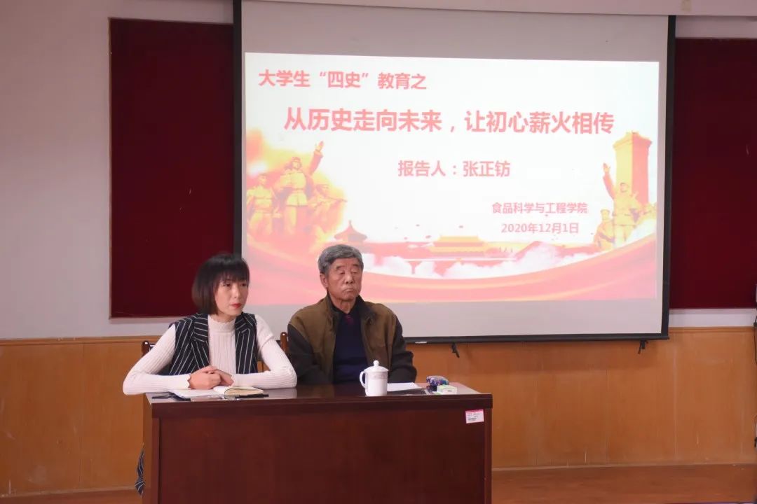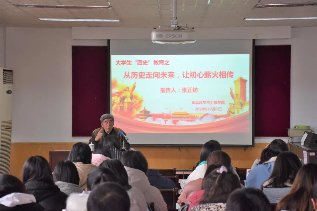 为引导学生树立正确历史观念,提高政治思想觉悟,12月1日上午,食科学院开展“从历史走向未来,让初心薪火相传”大学生“四史”教育专题报告会,特邀学校关工委张正钫老师做专题报告。学院辅导员、学生入党积极分子参加。