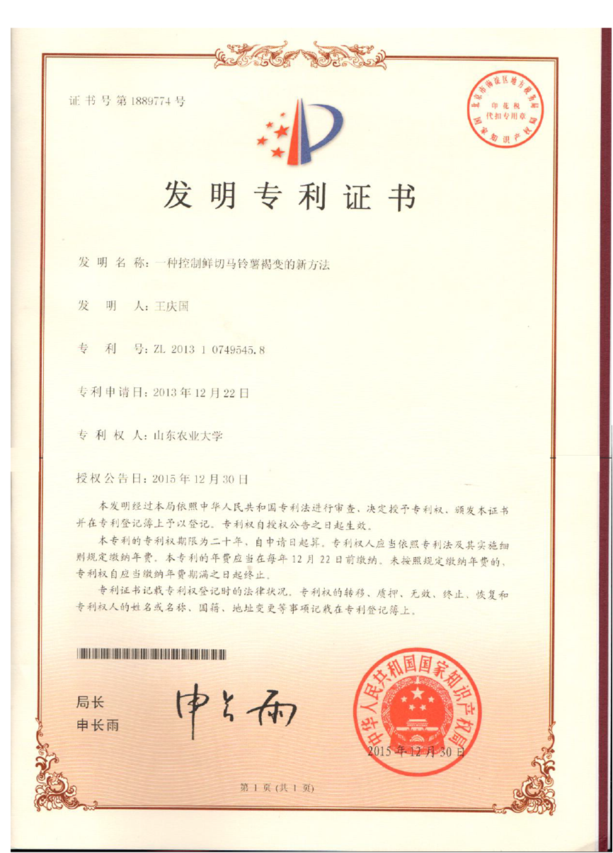 4 | A novel aspartic protease inhibitor inhibits the enzymatic browning of potatoes | Postharvest Biology and Technology, 2021, 172: 111353 | SCI:6.751 | 王庆国 |