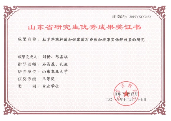 11 | Exogenous nitric oxide enhances disease resistance by nitrosylation and inhibition of S -nitrosoglutathione reductase in peach fruit | Frontiers in Plant Science, 2020, 11: 543 | SCI:4.402 | 石晶盈 |