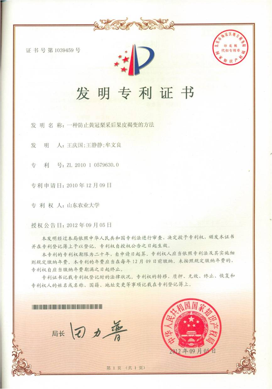 2 | Application of exogenous ethylene inhibits postharvest peel browning of ‘Huangguan’ pear | Frontiers in Plant Science, 2017, (7): 1-11 | SCI:6.627 | 王庆国 |