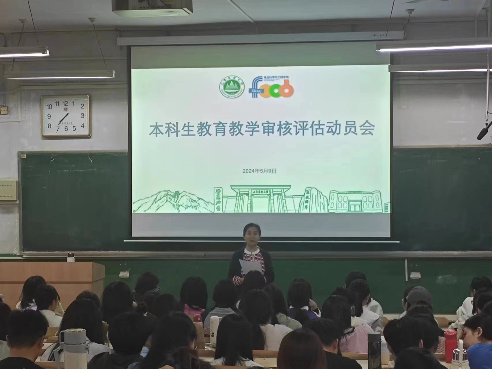 食科学院党委副书记孙慧敏、各年级辅导员和班主任通过召开学生干部例会、年级大会、主题班会等多种形式,了解学生学习现状,听取学生反馈,向同学们宣传新一轮教育教学审核评估工作的意义,解读审核评估工作的指导思想、工作方针、工作原则及迎评注意事项,并结合学校教育教学审核评估工作安排与学院教学工作实际,提出具体工作要求,全力做好迎接教育教学审核评估工作准备。