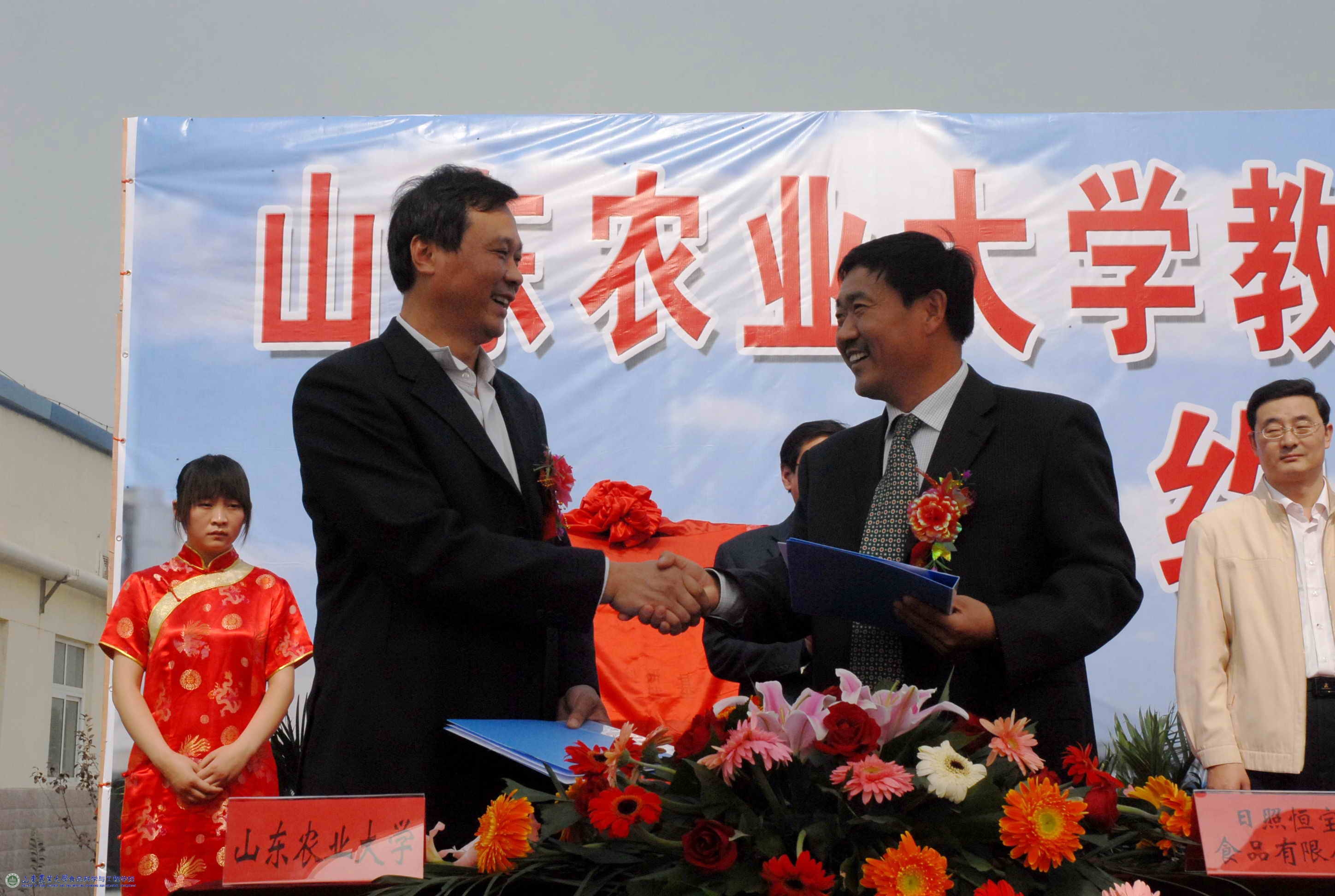 山东农大学生工作处处长朱莉、日照市农业局副局长韩玉凤为教学科研与就业实践基地揭牌。山东农大伟德国际手机1946院长董海洲、恒宝食品有限公司董事长兼总经理申恒宝在合作协议书上签字。山东农大伟德国际手机1946党委副书记田保状、莒县副县长匡立福分别讲话,祝贺山东农大教学科研与就业实践基地落户恒宝食品有限公司,并希望校企合作,共同发展,实现双赢。