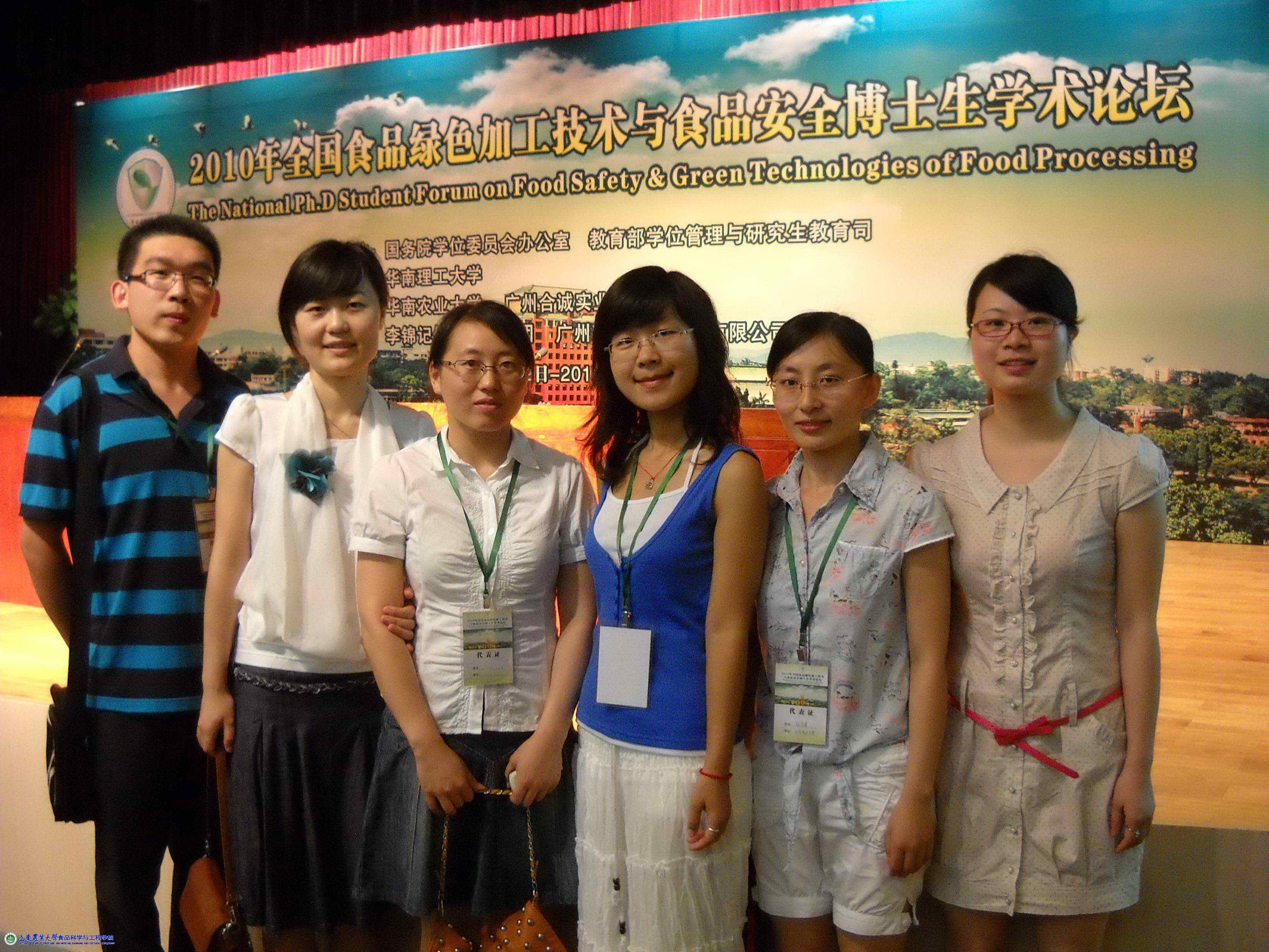 “2010年全国食品绿色加工技术与食品安全博士生学术论坛”于日前在华南理工大学举行,伟德国际手机1946郭萌萌、张文君、范腾、周林等四名硕士研究生参加论坛,展示了山东农大食科学院研究生的学术风采,领略了食品界大师的学术和人格魅力,学习了全国食品学科届研究生培养、研究生思想政治工作以及研究生党建工作经验。