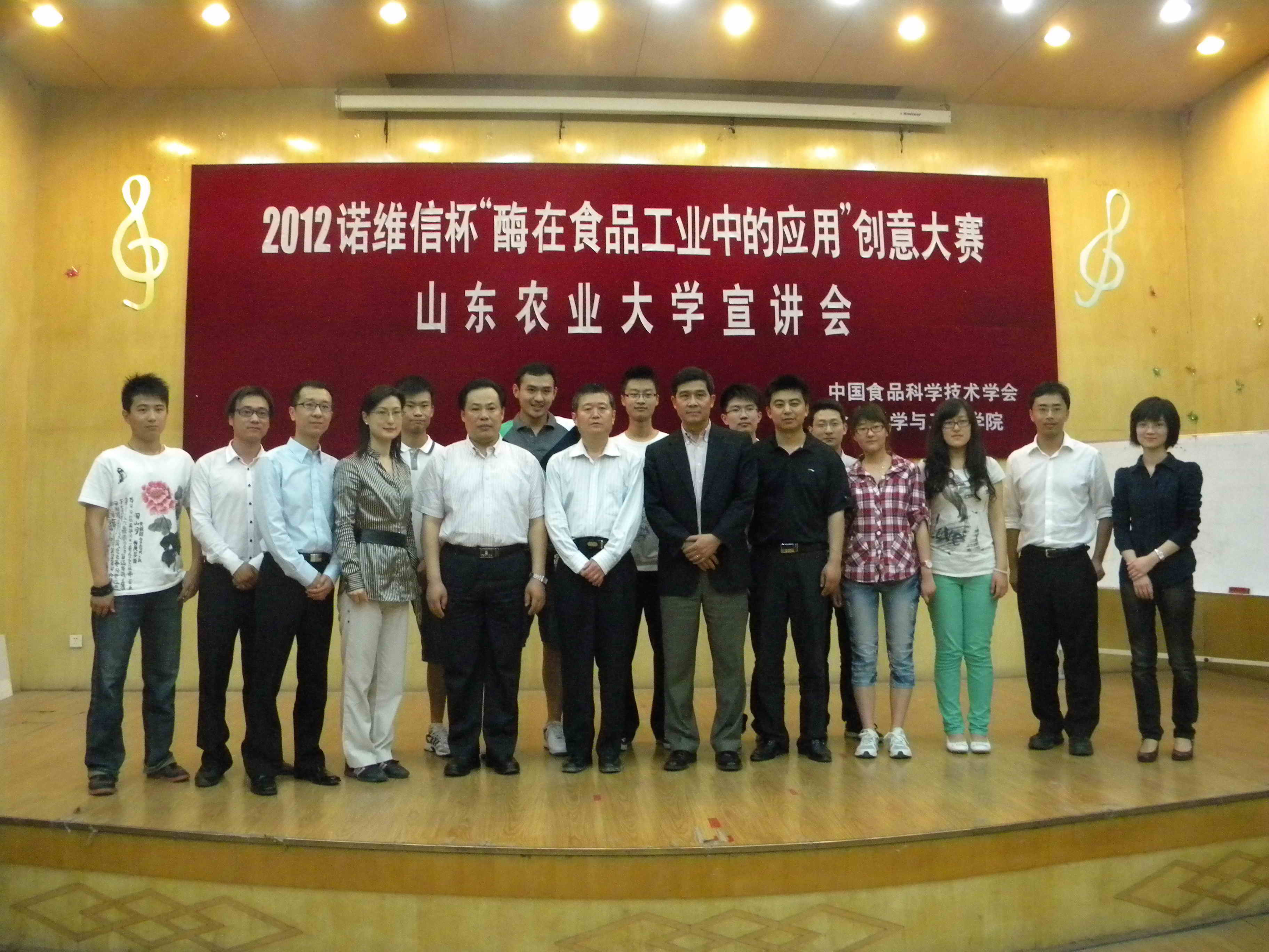 5月5日,由中国食品科学技术学会和诺维信(中国)投资有限公司主办的2012诺维信杯“酶在食品工业中的应用”创意大赛伟徳1946宣讲会,在北校区5N学术与报告厅顺利举办。中国食品科学技术学会专员黄磊,诺维信(中国)投资有限公司大中华区高级总监李力,诺维信(中国)投资有限公司应用开发部经理韩望博士,诺维信(中国)投资有限公司人员及组织发展部经理胡晓勇,诺维信(中国)投资有限公司可持续发展专员江涛一行5人;食科学院党委书记于林,副院长乔旭光,院党委副书记田保状,院团委全体成员,近300名来自食科、生科学院的本科生、研究生参加本次宣讲活动。