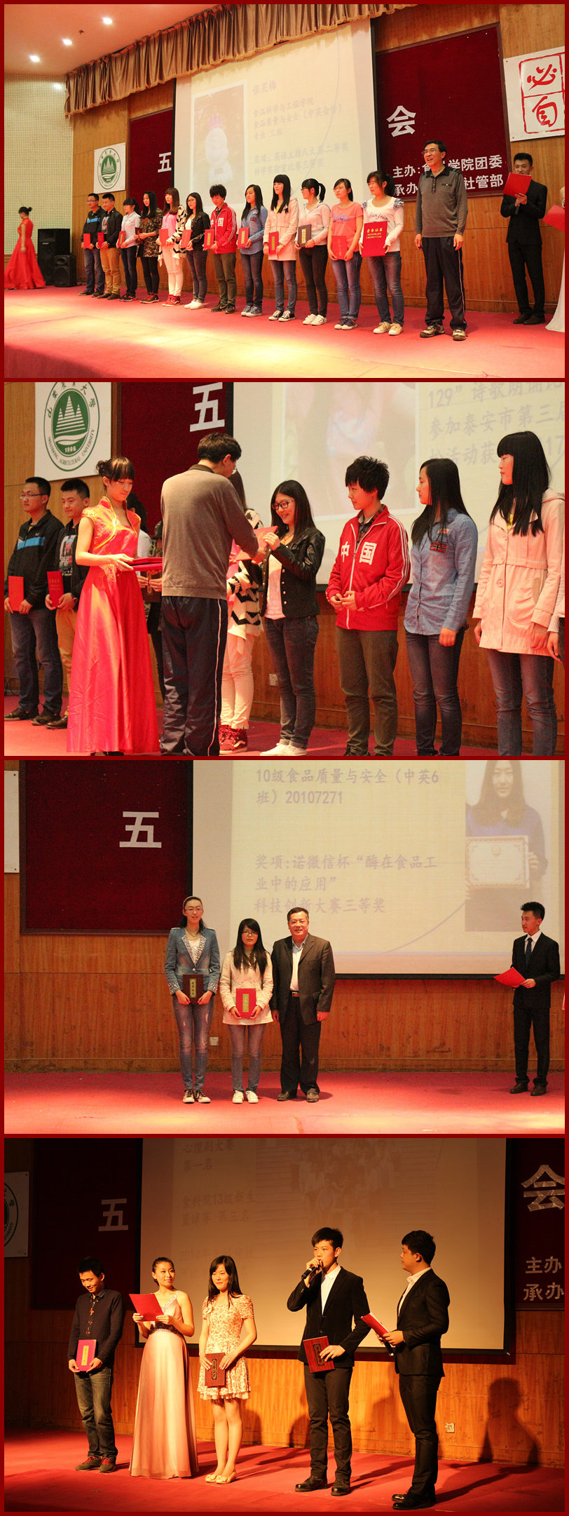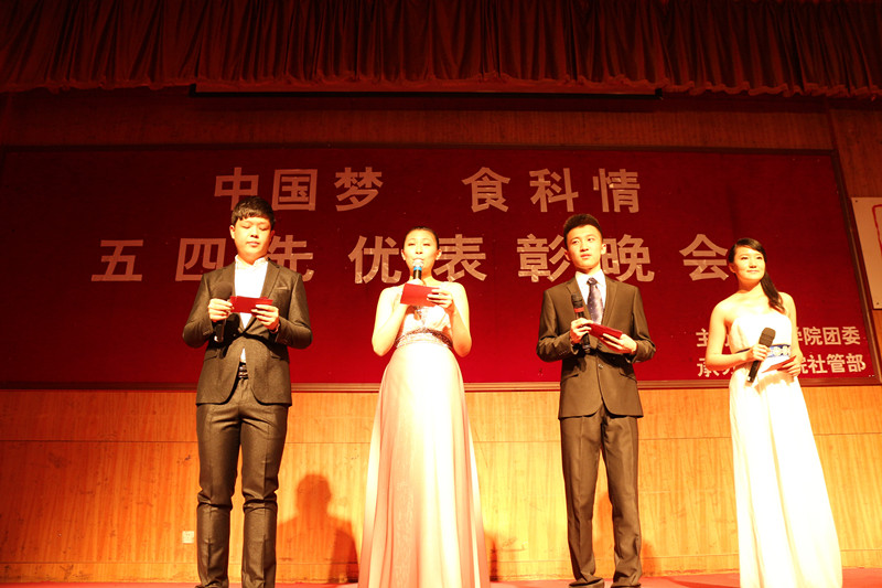 5月11日晚,由食科学院团委主办,食科学院社管部承办的“中国梦,食科情”五四先优表彰晚会在南校区图信楼第一学术报告厅隆重举行,学院党委书记于林、副书记赵明月以及学院团委全体老师和2013级全体同学一同参加了颁奖晚会。
