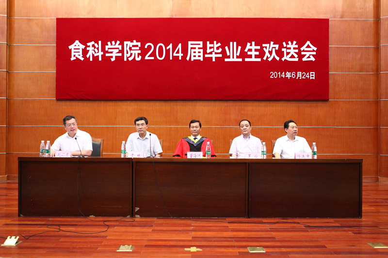 6月24号上午11:00,校本部文理大楼学术报告厅气氛热烈,座无虚席,2014届毕业生们悉数到场,食科学院2014届毕业生欢送会在此举行。食科学院党委书记于林,食科学院院长、博士生导师董海洲,副院长乔旭光等领导和学院部分教职工,2014届全体毕业生和部分在校生出席了仪式,此次欢送会由食科学院党委副书记赵明月主持。