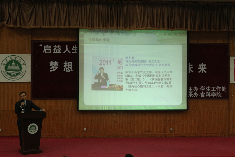 12月7日上午,南校区第一学术报告厅掌声迭起、座无虚席,由食科学院举办的“启益人生”名家讲坛在此举行。讲坛邀请了两名优秀的校友——北京科为博生物集团副总裁李兆勇和华有农牧科技有限公司副总裁王延忠担任主讲。400多位食科学院师生参加报告会。