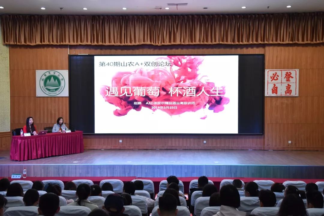3月23日,为鼓励、引导食科学子发扬奋勇拼搏的学习精神,食科学院于南校区第一学术报告厅成功举办第四十期“山农A+双创”论坛。2006级葡工专业优秀校友赵娜、我院副教授金玉红老师、团委于小艳老师及2018级全体同学参加此次活动。