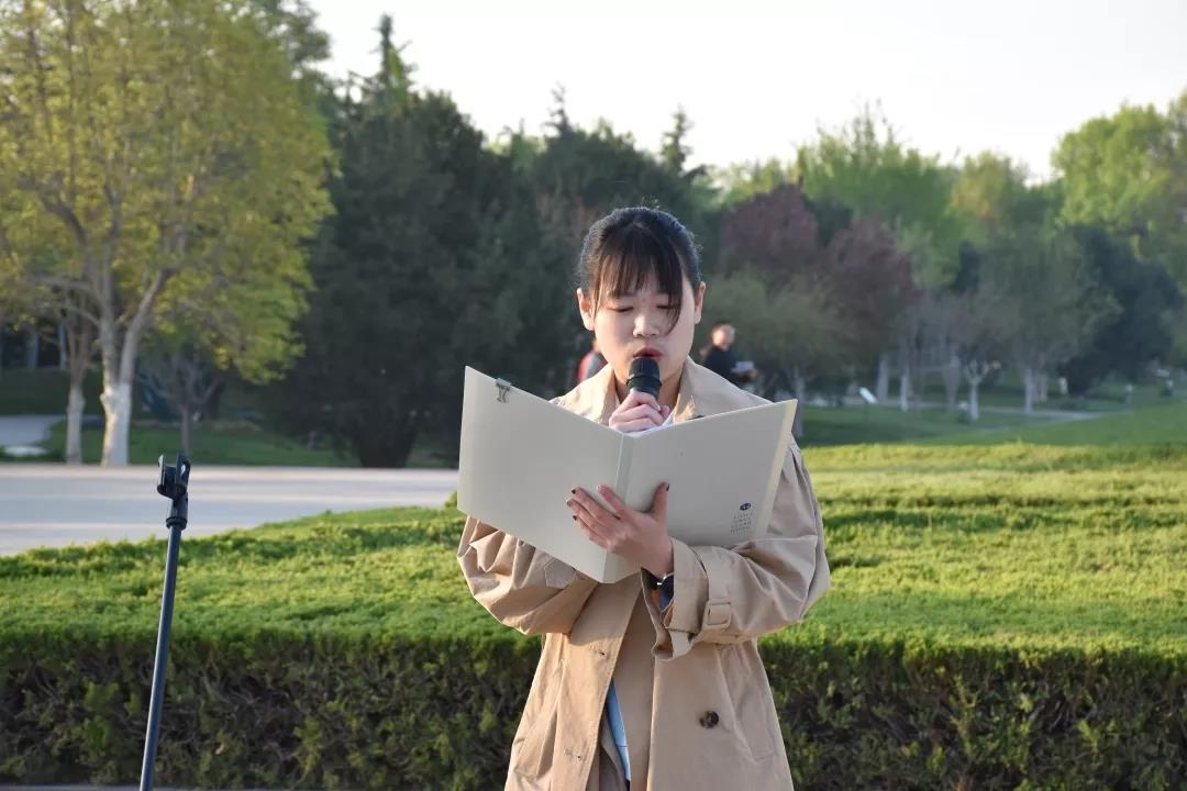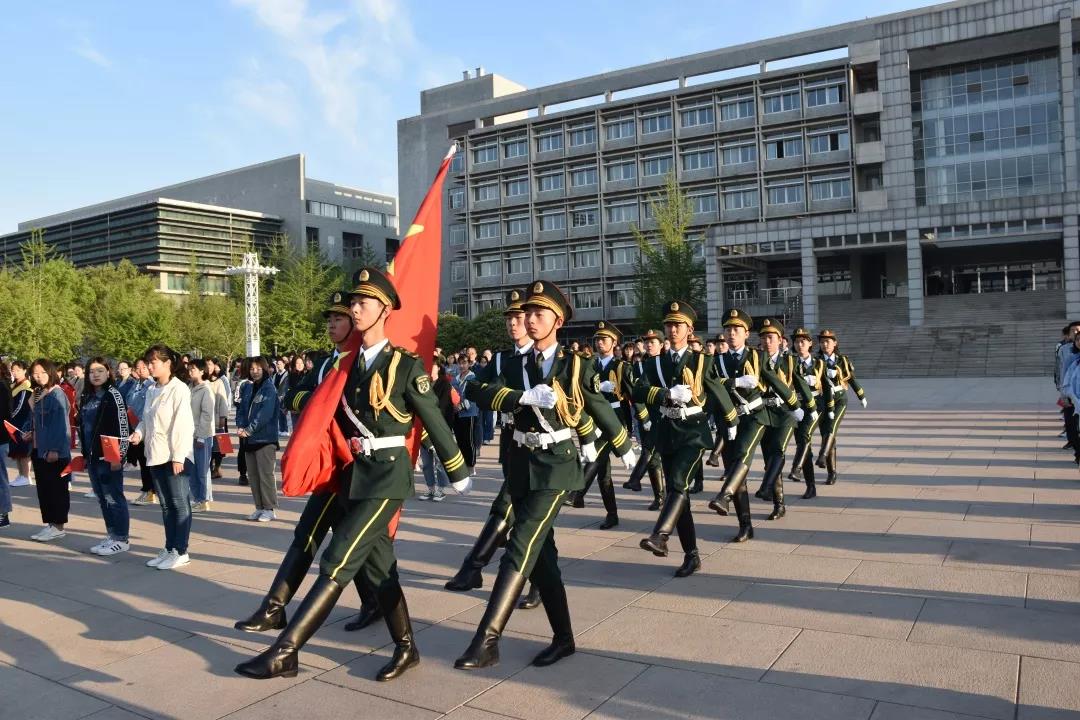 4月15日清晨,400多名青年学子聚集在南校区综合楼广场,观摩升旗仪式,齐唱国歌。