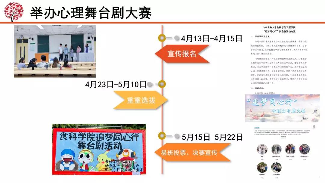 | 1 | 举办心理舞台剧大赛 | 2019.5.22 |
