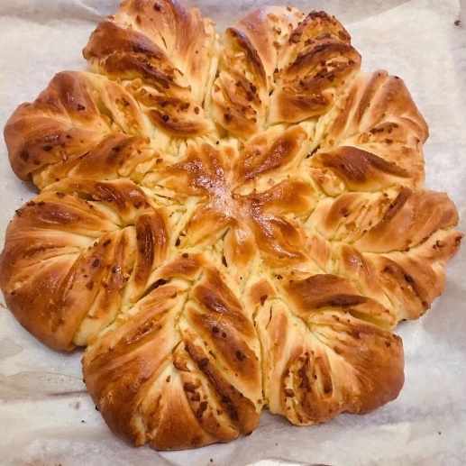 以上三道美味的菜肴由来自16级食安三班盛雪凝同学。精致的摆盘加上流连忘返的味道还有寓意美好的名字,相信一定可以在这期间给你和家人带来好运。不过除了美味菜肴,面食在我们北方人的餐桌上也有很重的份量。那就一起来看看由16级中英三班岳子琳推荐的蒜香面包吧!