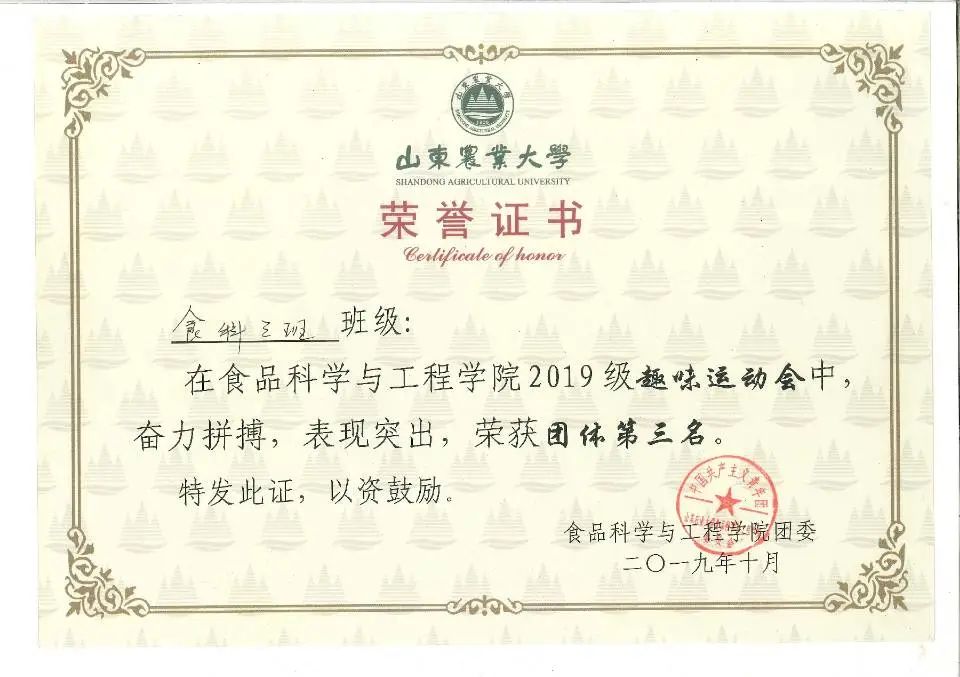 2019年十月,在伟德国际手机19462019级趣味运动会奋力拼搏,表现突出荣获团体第三名