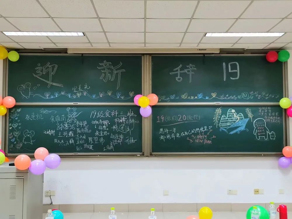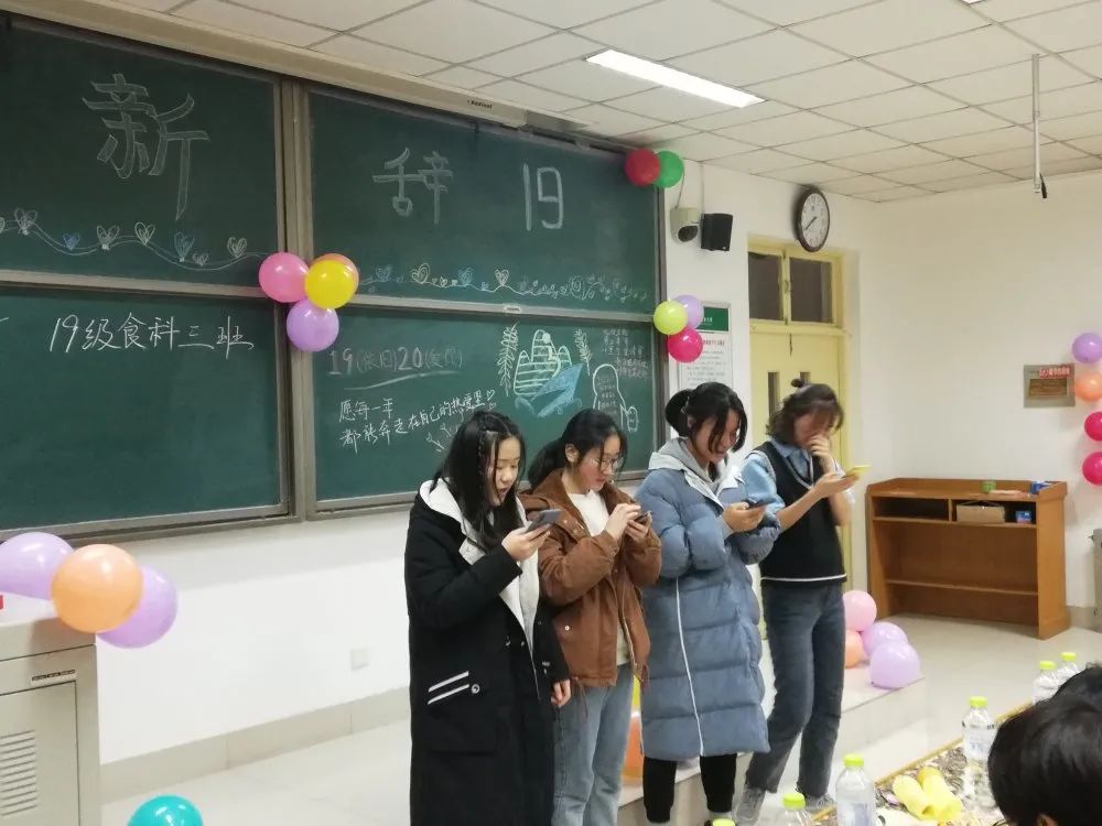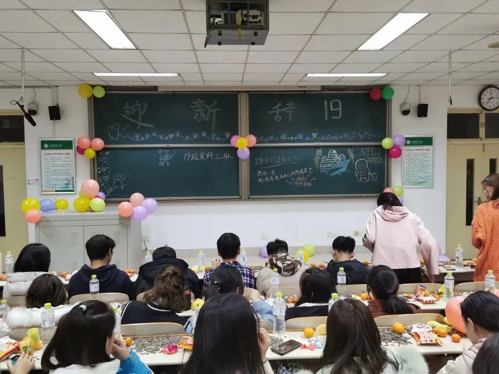 经过提前一周多的准备,在班委们和同学们的努力下,跨年的前一天晚上,食科三班的同学们第一个不在家的过年夜在教室里开启。这是一个难忘而特殊的夜晚,大家在一起其乐融融。大家伙聚在一起,唱着,乐着,在这么一个特别的时间,让三班充满了生活气息,和家的味道,也在每个人记忆里留下了浓墨重彩的一笔。