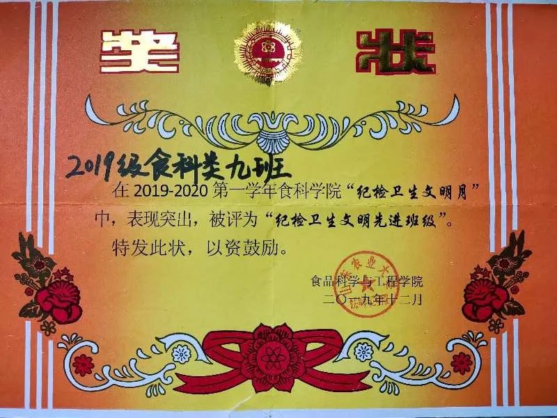 1.在2019-2020学院纪检文明月活动中荣获一等奖。