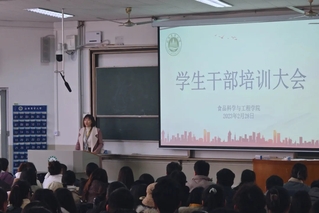 为进一步加强学生干部队伍建设,增强学生干部的综合素质、工作能力和服务意识。食科学院于2月28日举行新学期学生干部培训大会。此次会议由学院团委书记李昂主持,党委副书记于小艳、各年级辅导员、全体学生干部参会。