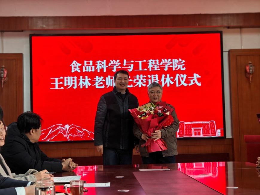 莫道桑榆晚,为霞尚满天。此次教师光荣退休仪式不仅肯定了王明林老师卓著的学术成就、对科研事业的执着追求、对食科学院的学科建设和教育事业做出的巨大贡献,更激励青年教师以王老师为标杆和楷模,勤奋扎实科研,躬耕教坛育人,增强为学院事业奋斗的信心和决心。今后,学院将秉持“思想上关心、生活上照顾、精神上关怀”的宗旨,用心用情、尽心尽力地做好退休教师的服务工作。