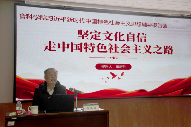12月11日,食科学院开展习近平文化思想专题学习,邀请原学校党委副书记、纪委书记董新胜作辅导报告,学院全体教职员工、部分学生代表参加活动。