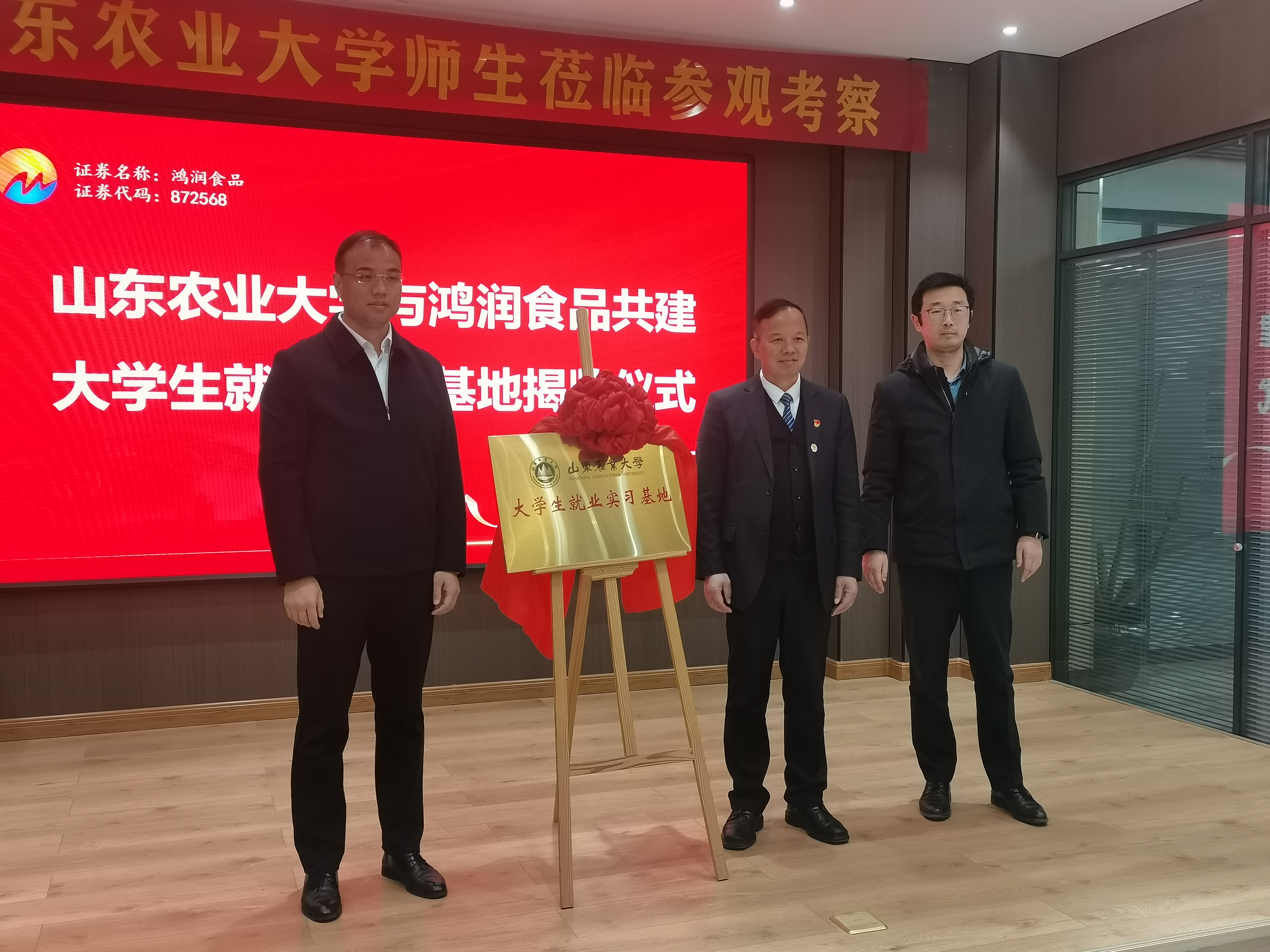 济宁鸿润食品股份有限公司是一家从事禽类标准化养殖、屠宰加工及餐饮连锁为一体的省级农业产业化重点龙头企业,是中国500强农业企业,拥有12家子公司,员工3000余人,总资产过十亿元。参加仪式的学工处处长冯国营表示,学校与鸿润食品公司有深厚的合作基础,这次挂牌为双方深化交流、共谋发展搭建了新的平台与载体。当前,学校正处在决战“十四五” 决胜“冲一流”关键时期,毕业生的高质量就业更是“双一流”建设的重要支撑。希望通过此次揭牌,深入推进校企双方的学科链、产业链、人才链深度融合。